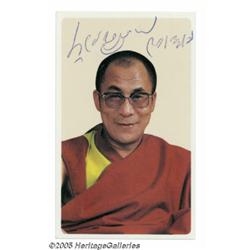 Dalai Lama Signed Photograph. A 2" x 3" color pho