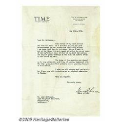 <B>Edgar Rice Burroughs Signed Letter.</B></I> Featured is a typed letter, dated February 24, 1938, signed by novelist and Tarzan-...