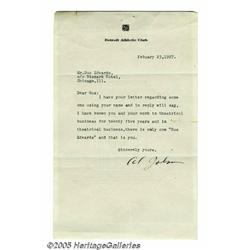 <B>Al Jolson Signed Letter.</B></I> Here is a letter typed on "Detroit Athletic Club" stationery from legendary jazz sin...