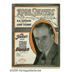 <B>Al Jolson Signature Sample with "April Showers" Sheet Music Signed by Louis Silvers.</B></I> Singer Al Jolson achieve...