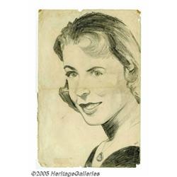 <B>Janis Joplin Sketch with Photograph.</B></I> A large, signed pencil sketch of high school classmate Linda Jean Rogers drawn by ...
