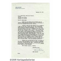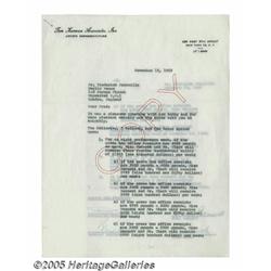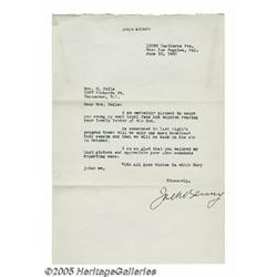 <B>Jack Benny Signed Letter.</B></I> A radio and television pioneer and master of comedic timing, Jack Benny was one of the greate...
