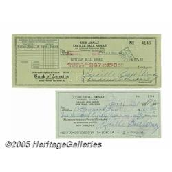 <B>Lucille Ball Signed Checks.</B></I> Two checks, one from the personal account of comedienne Lucille Ball, the other from a join...