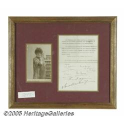 <B>Sarah Bernhardt Signed Letter With Photograph.</B></I> Primarily known for her theatrical work, French actress Sarah Bernhardt ...