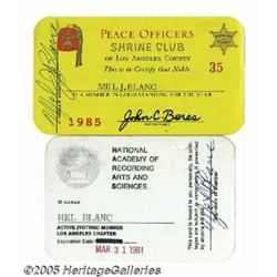 <B>Mel Blanc Signed NARAS and Shrine Club Cards.</B></I> A voice artist without equal, Mel Blanc provided the voices for almost ev...