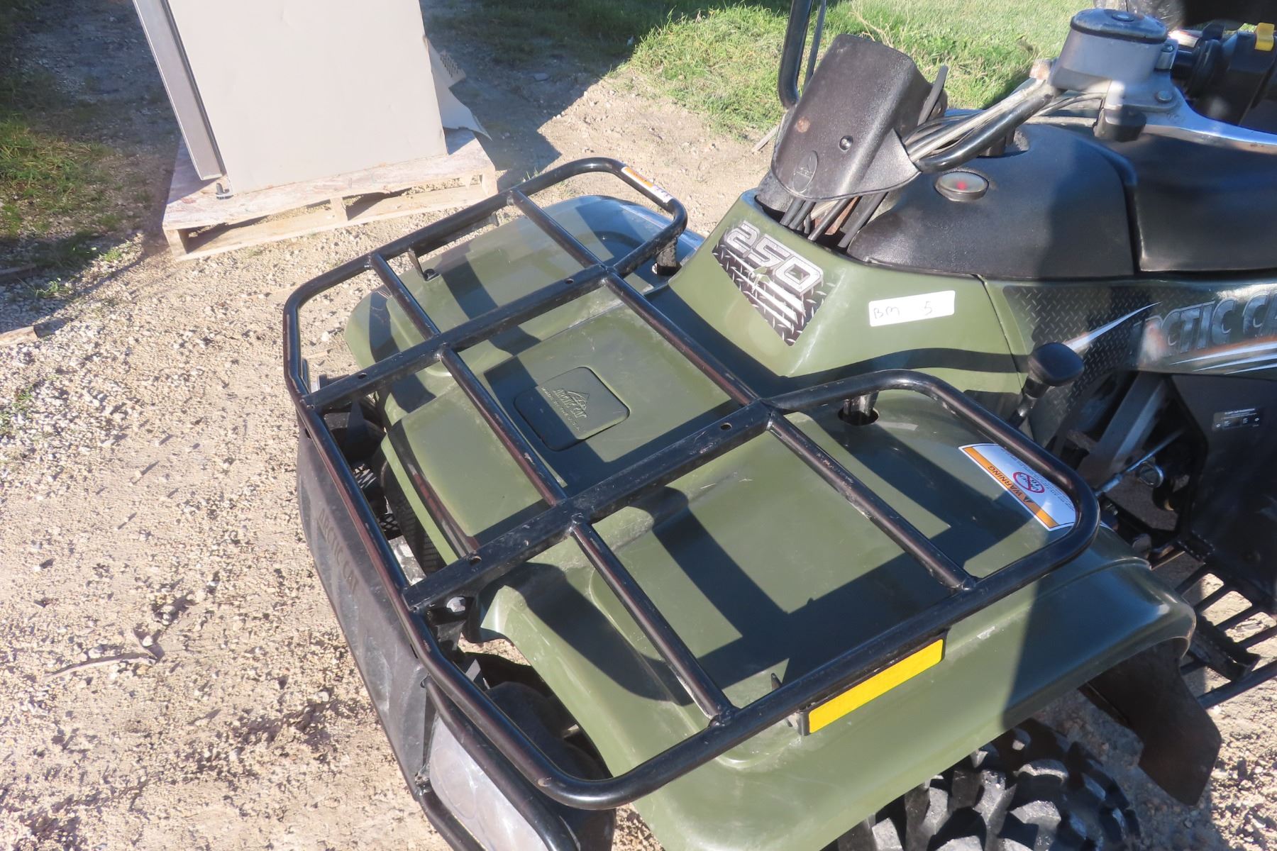 2005 Arctic Cat 250cc ATV with Electric Start and Reverse; Runs and Drives; Good Condition. With Upseat. No TOD