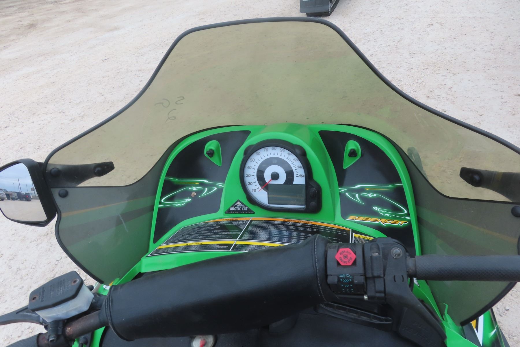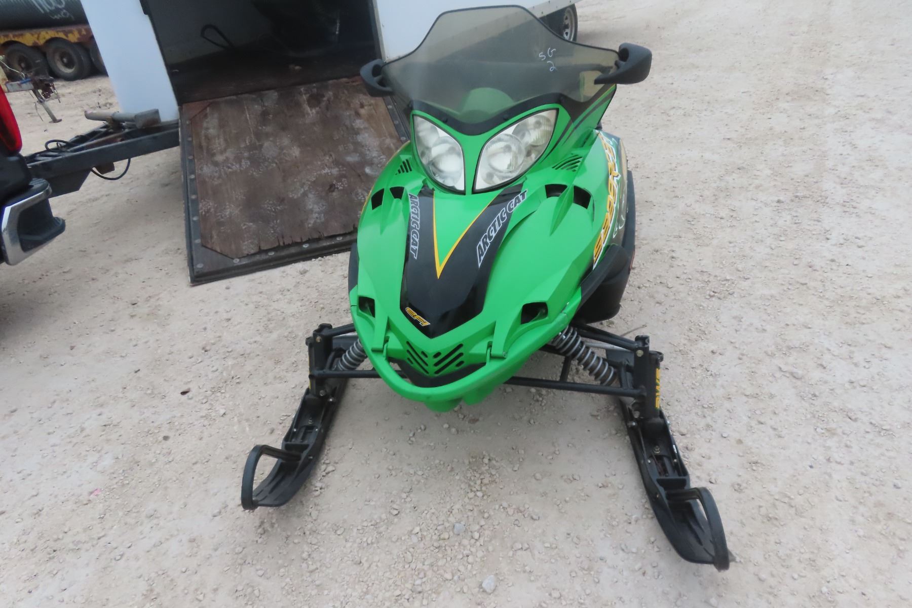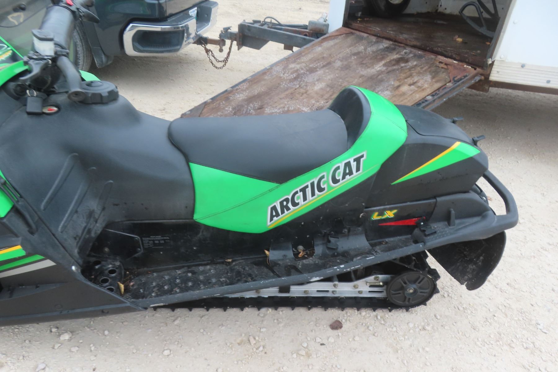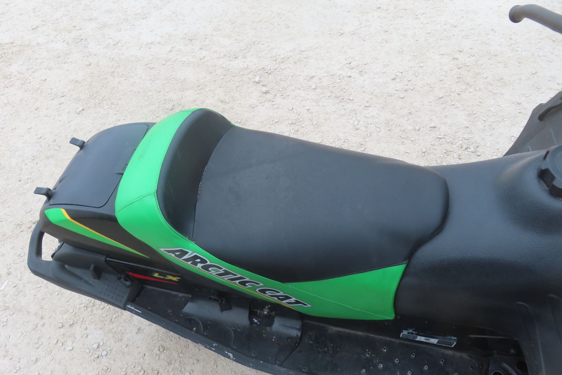 2005 Arctic Cat 700 LX SaberCat featuring a liquid-cooled 700cc engine and Arctic Cat’s performance trail chassis. Equipped with reverse, remote start system, and a combination analog speedometer with digital display for trip and engine information. Includes hand controls, rider-forward ergonomics, and SaberCat graphics package. Odometer shows approximately 6000 miles. Requires battery.
