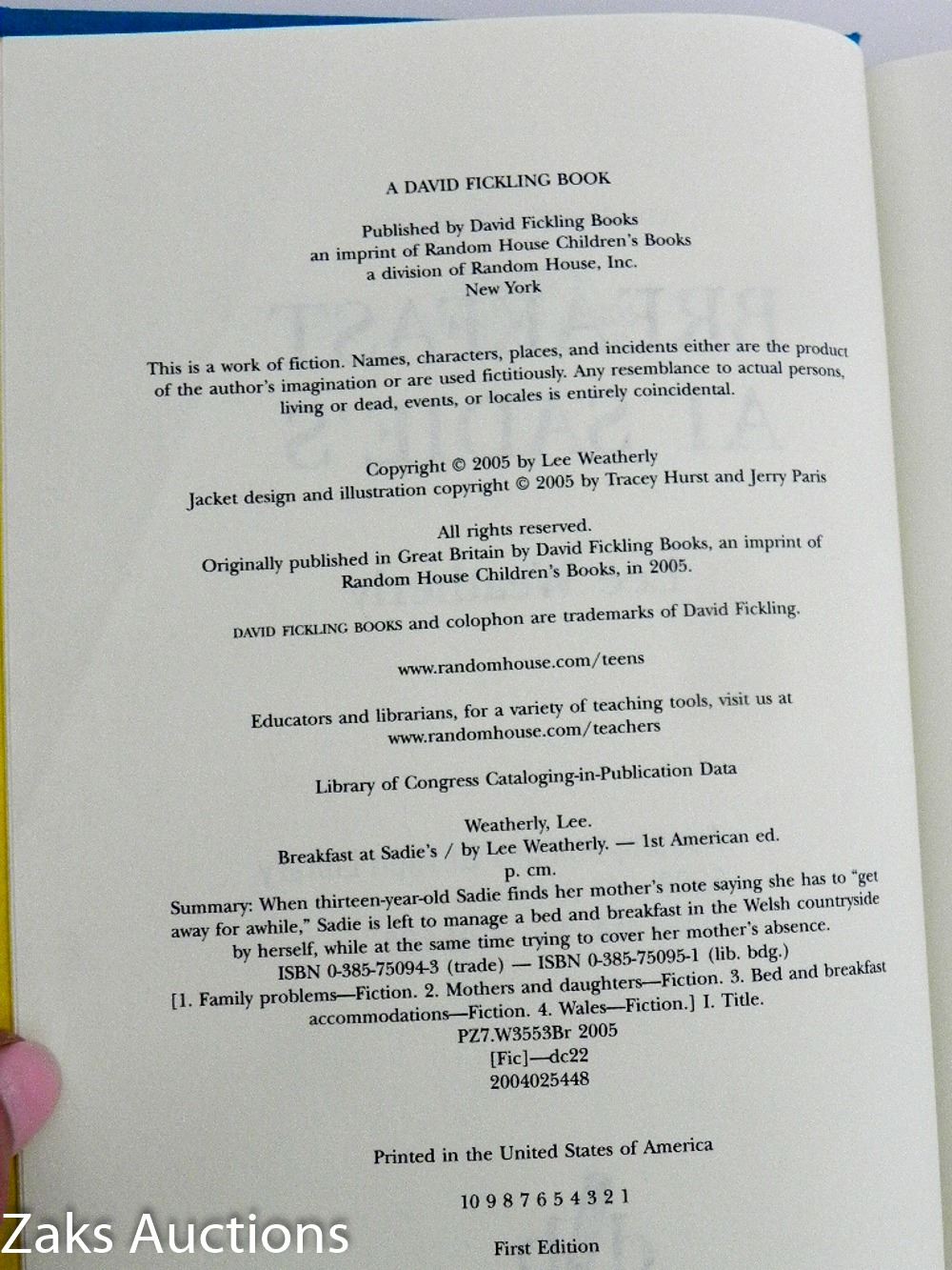 2005 BREAKFAST AT SADIE'S - LEE WEATHERLEY. HARDCOVER