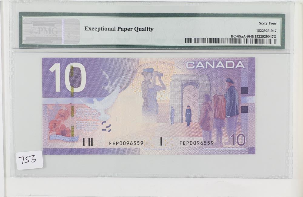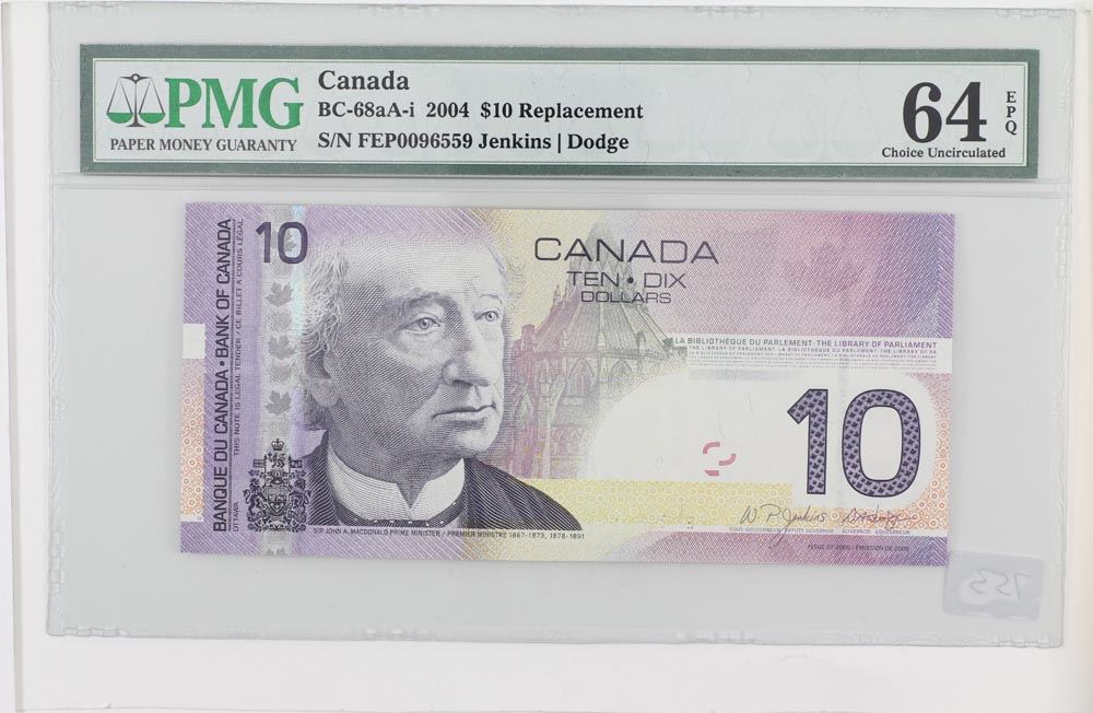 2005 Bank of Canada Replacement $10. BC-68aA-i, FEP(0.045M-0.135M), S/N: FEP0096559, PMG CUNC-64, EPQ