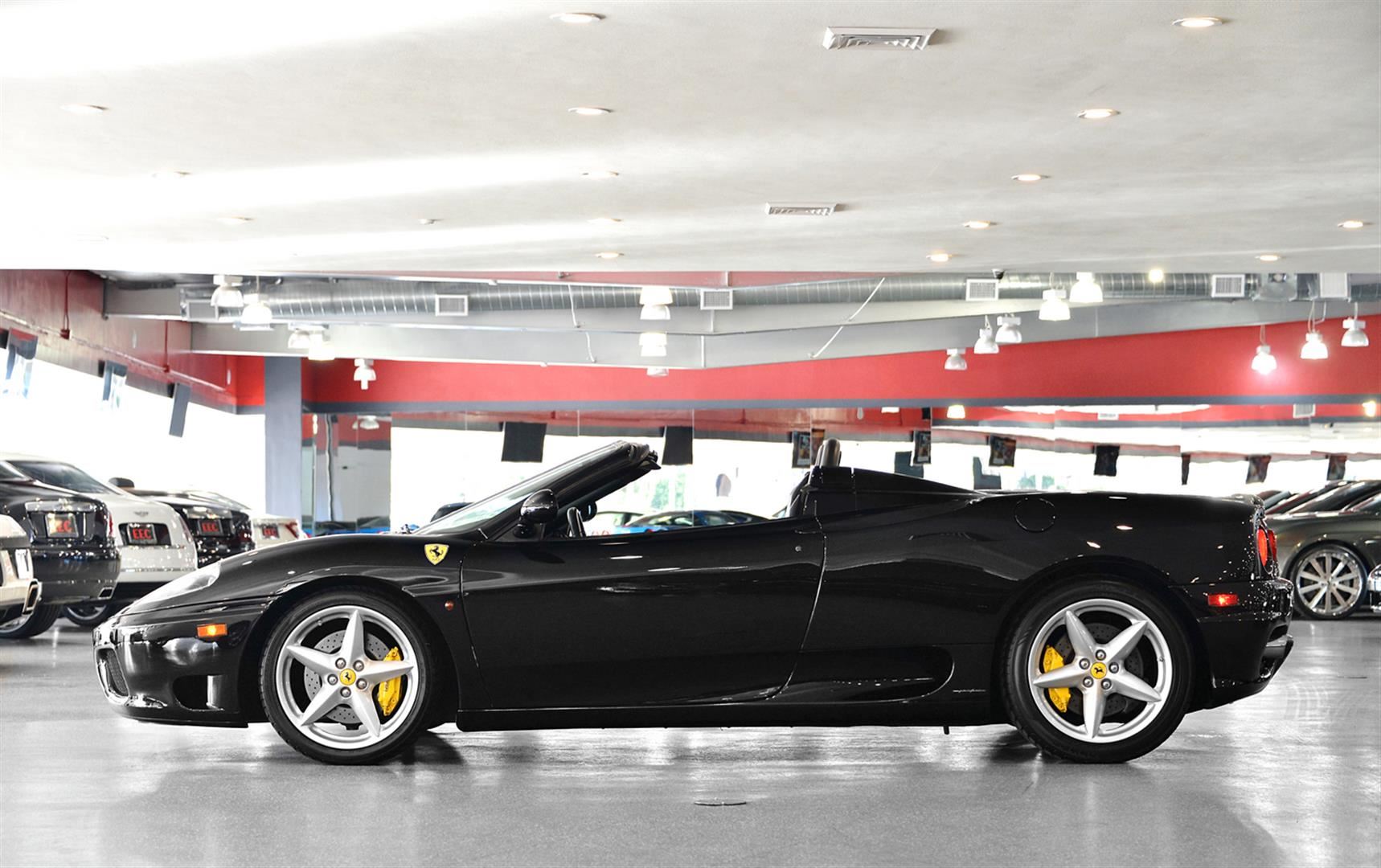 This 2005 Black Ferrari 360 Modena Spider F1 Convertible comes with a 3.6L V-8 cyl engine and 6-Speed Auto-Shift transmission with RWD. It has a mere 18,316 miles and recieves and average of 10 city MPG and 16 highway MPG. Vin #ZFFYT53A150140028.