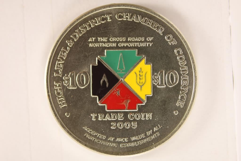 COMMERCE $10 TRADE COIN, PARTIALLY COLORIZED BRILLIANT UNC