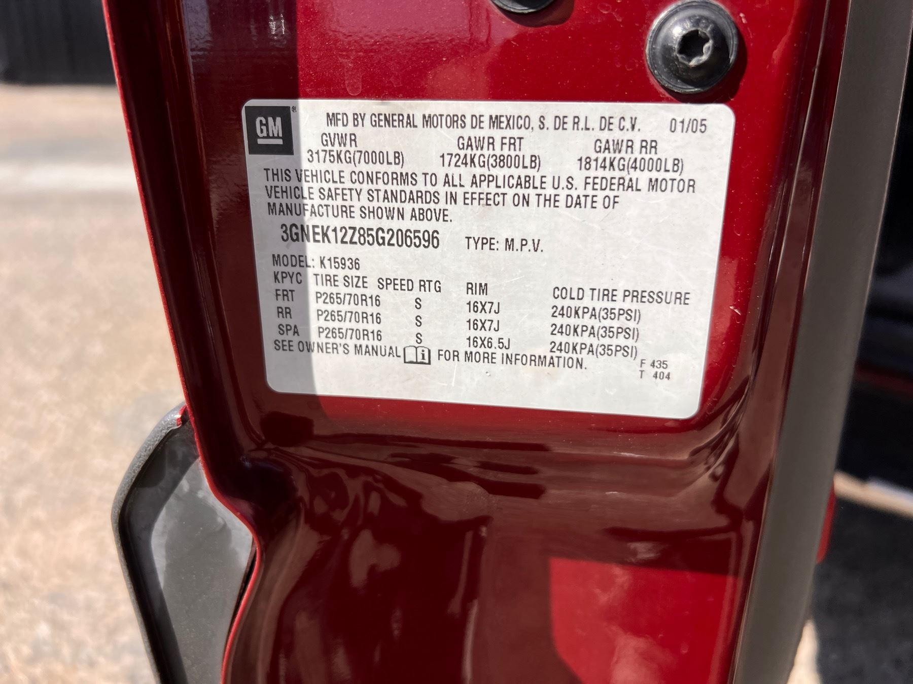 VIN: 3GNEK12Z85G206596