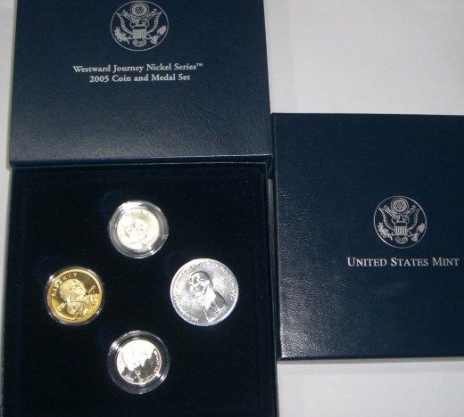 2005 COIN AND MEDAL SET-WESTWARD JOURNEY NICKEL SERIES & DOLLAR *NEW IN ORIGINAL BOX & PACKAGE!! SET CAME OUT OF SAFE!! ***Coin, Currency & All Items Listed in this auction - Grades, Conditions and Values are not Safe Deposit Coins LLC Responsibilty. Grades, Condition and Values are determined by Consigner(s) & Buyers ONLY