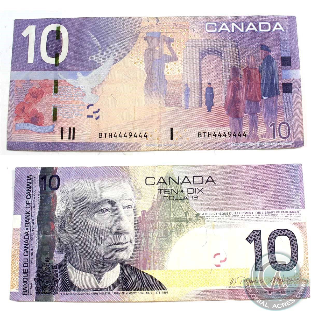 2005 Canada $10 Banknote with 2 Digit RADAR with Serial BTH4449444.