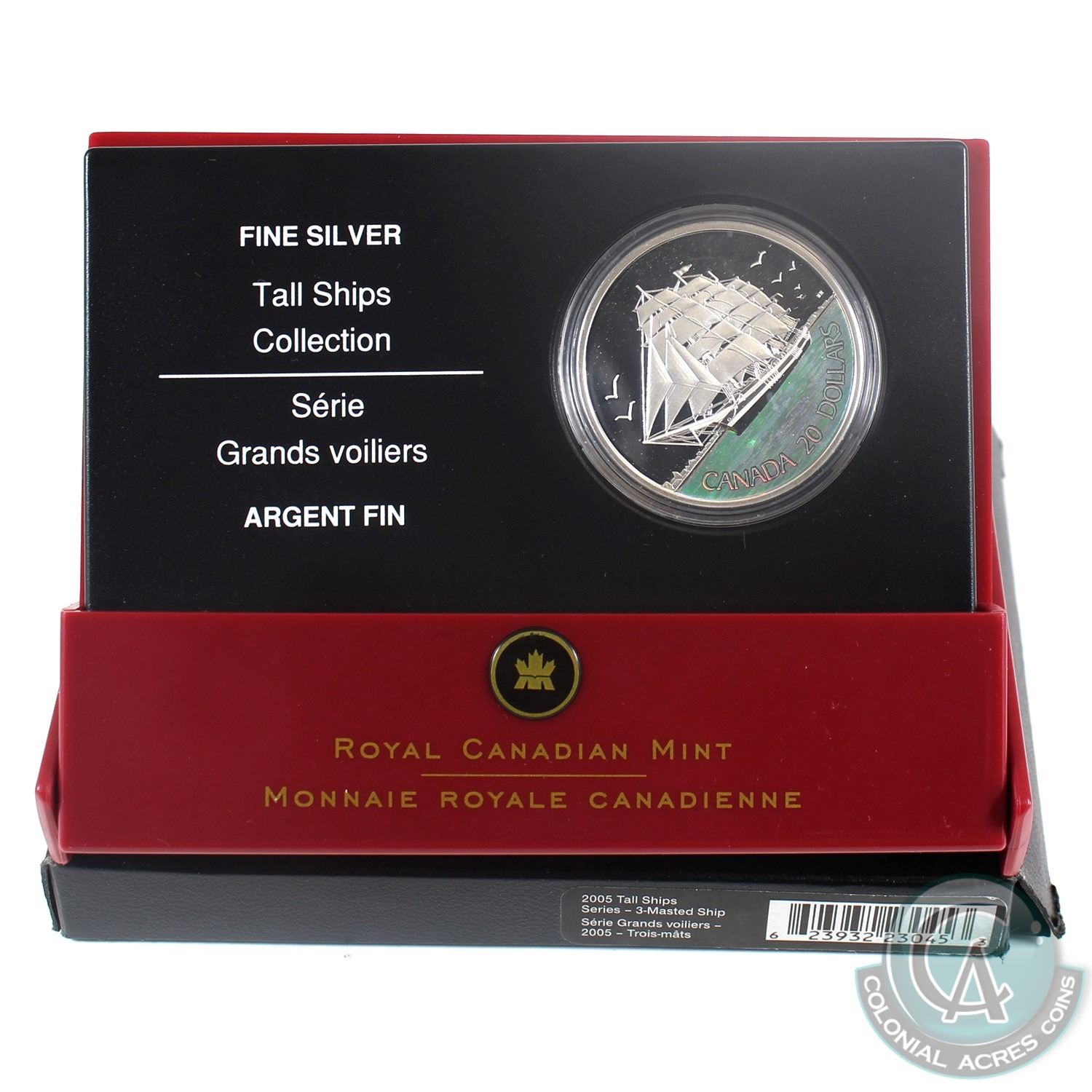 2005 Canada $20 Tall Ships-3-Masted Ship fine silver coin(Tax Exempt).Coin comes with all original mint packaging(scuffed box & clamshell hinge is broken in one corner)