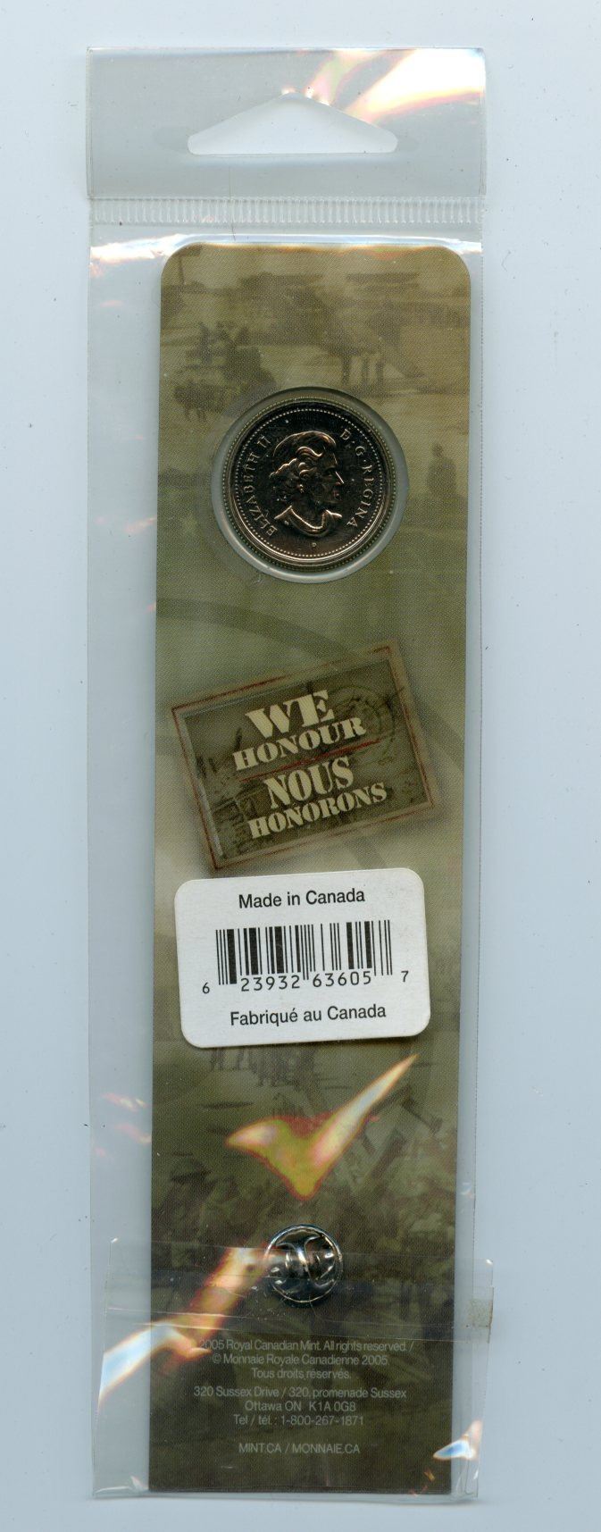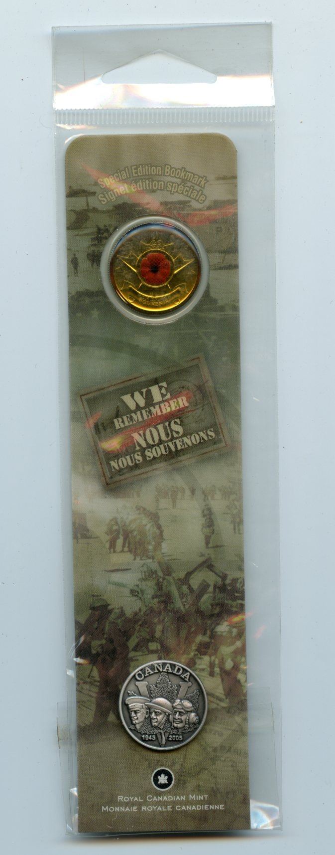 Bookmark with colour poppy quarter and pin - We Remember.