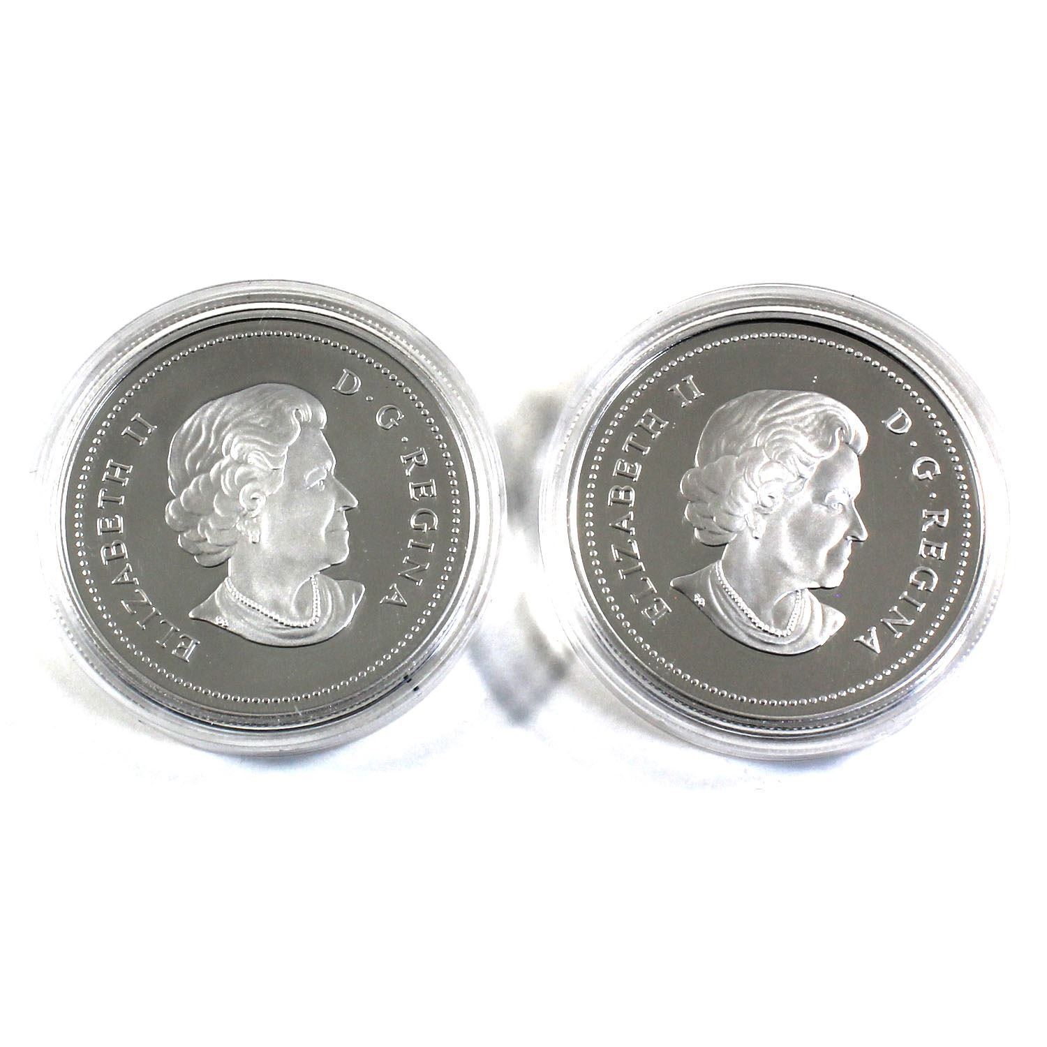 2005 Canada $5 Saskatchewan & Alberta Centennial Special Edition Silver Coins in Capsules (scratched capsules). 2pcs (TAX Exempt)