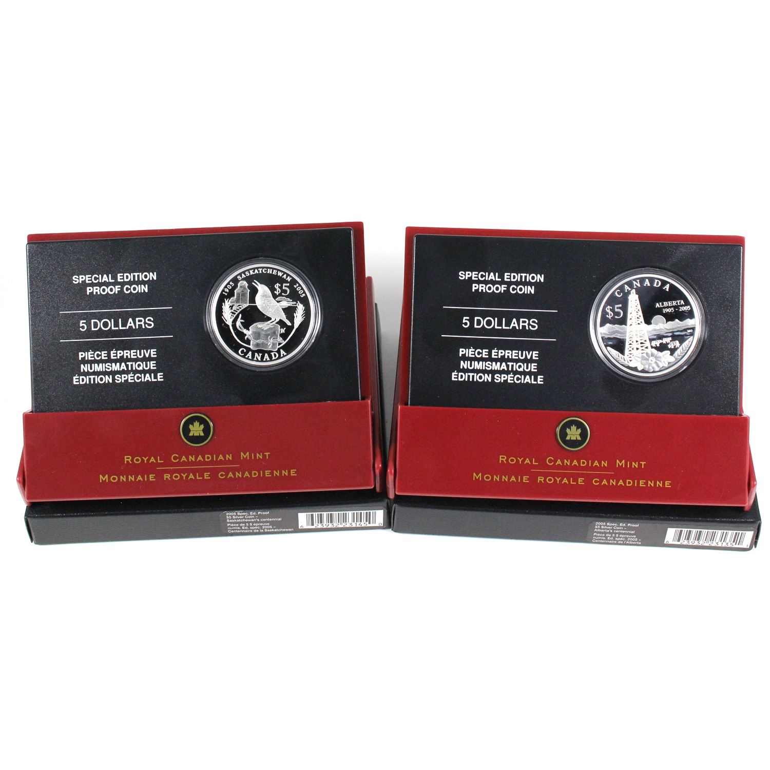 2005 Canada $5 Special Edition Proof Fine Silver Coins - Alberta's & Saskatchewan's Centennial. 2pcs (TAX Exempt)