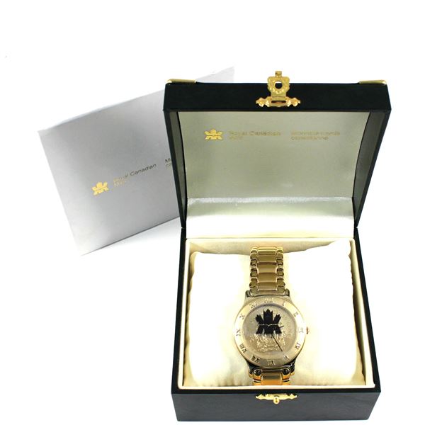2005 Canada 50-cent "Coat of Arms" RCM Issued Stainless Steel Wristwatch. Like-New Condition! Protective box slightly scuffed.