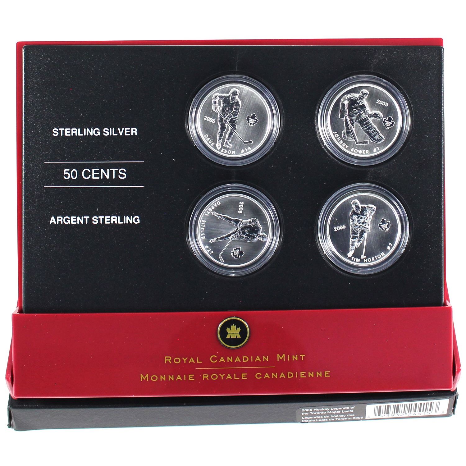 2005 Canada 50-cent Hockey Legends of the Toronto Maple Leafs 4-Coin Set of 9.3g Sterling Silver Coins. Set Includes: Bower; Horton; Sittler; & Keon. Coins contain slight natural toning.