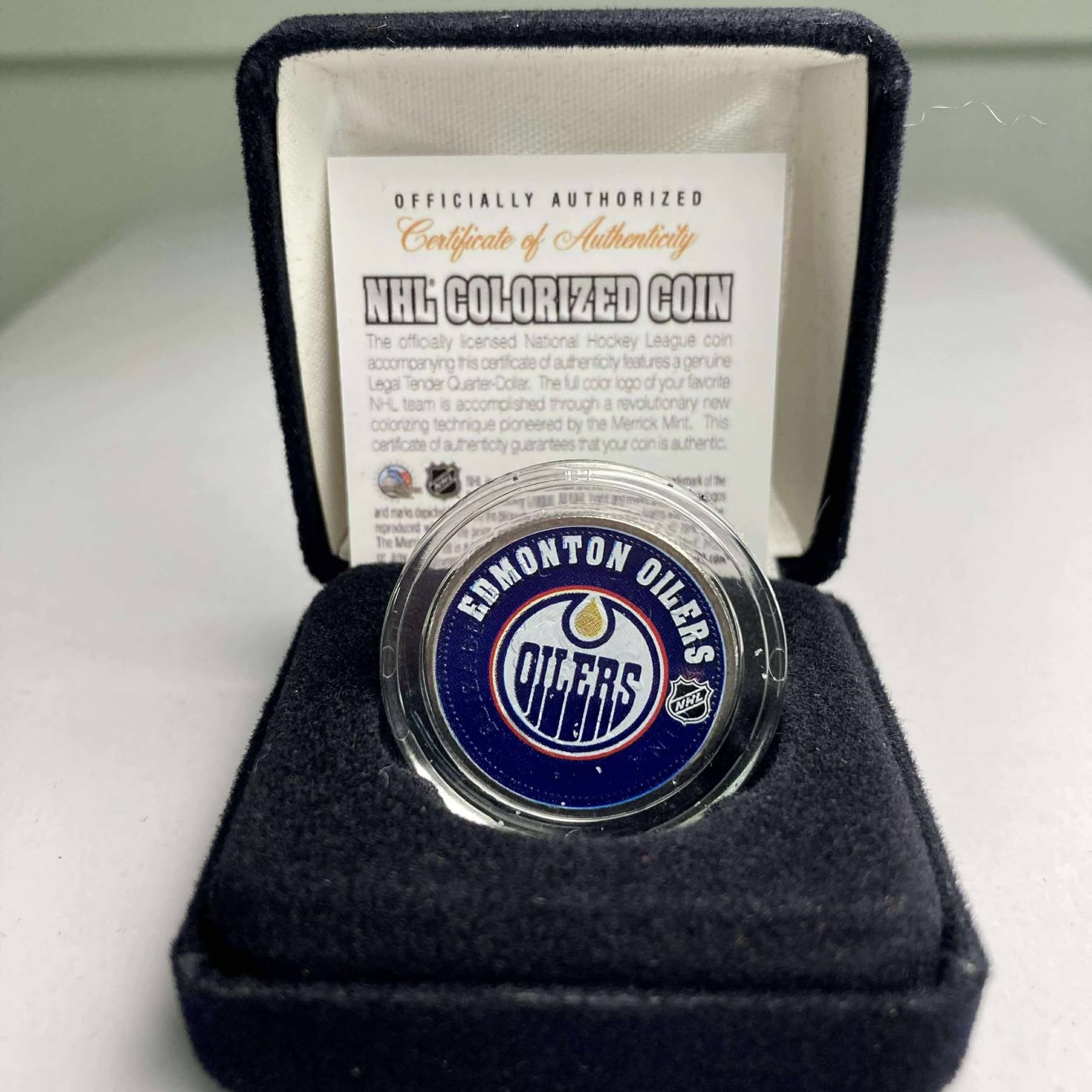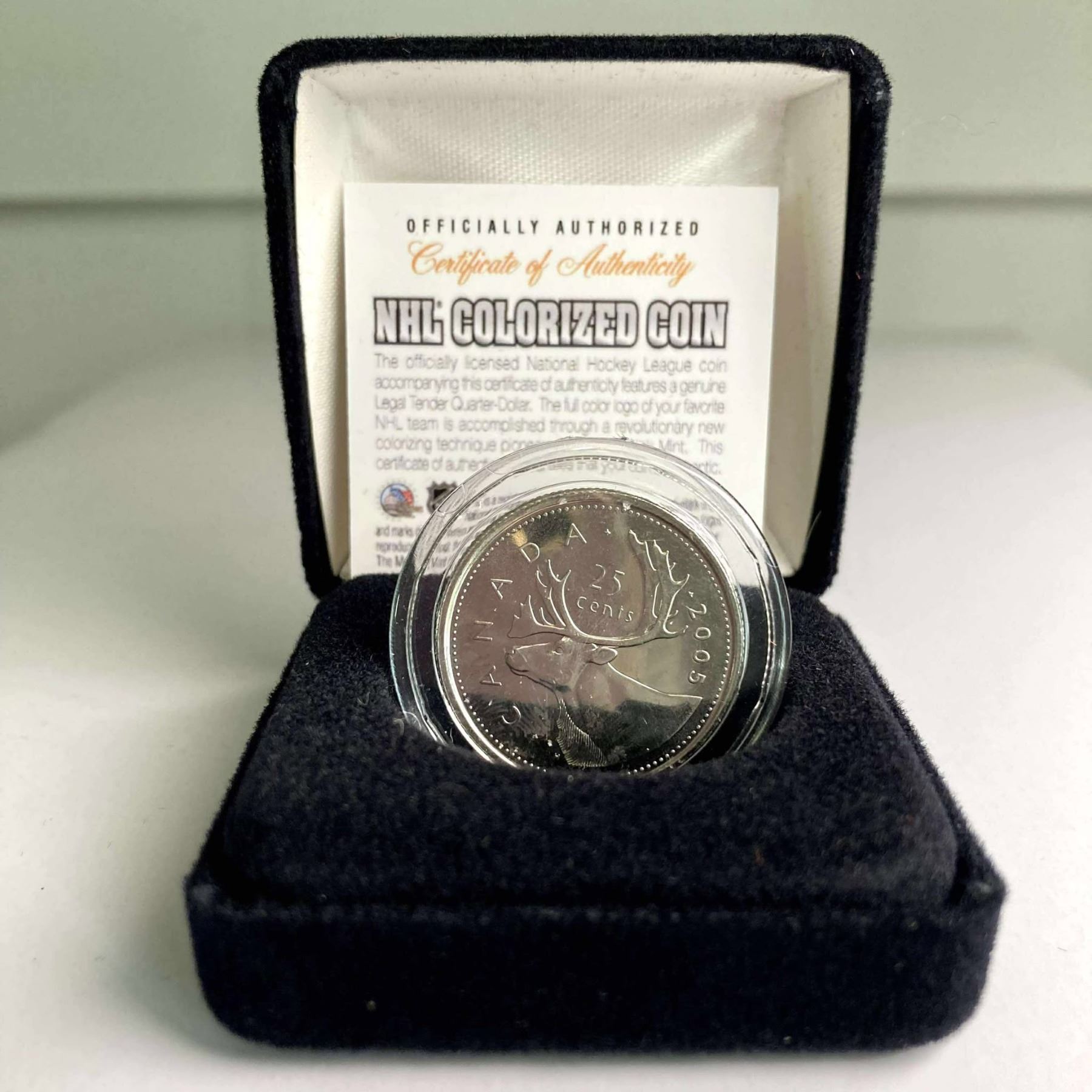 Colourized 25-cent coin in case with COA.