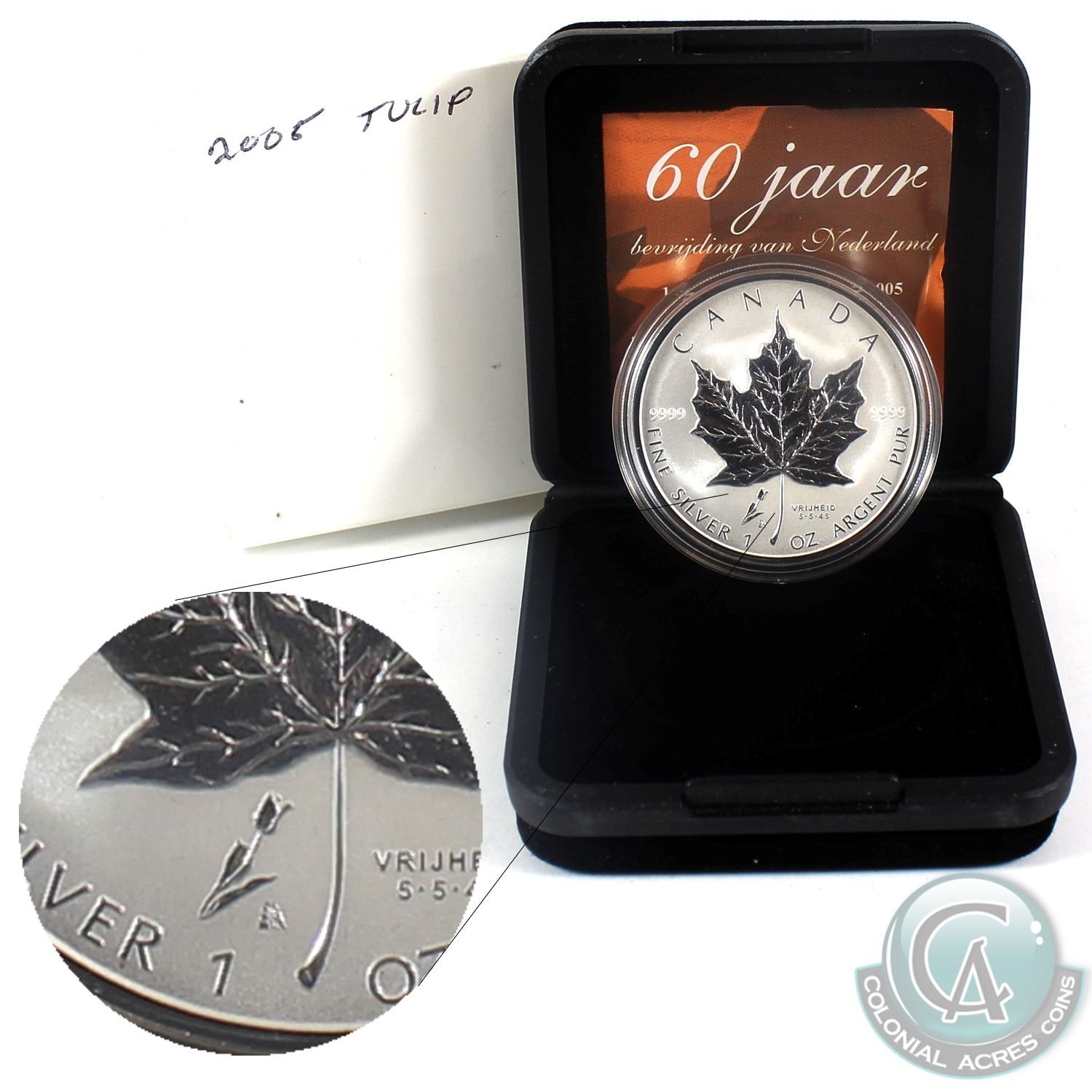 2005 Canada Privy Mark Tulip 1oz. Fine Silver Maple Leaf (TAX Exempt)