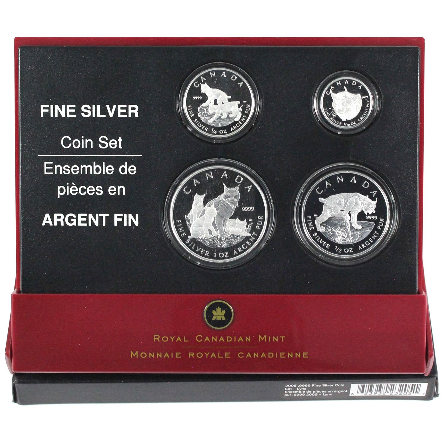 2005 Canada The Lynx Fractional Fine Silver 4-coin Set. (TAX Exempt)