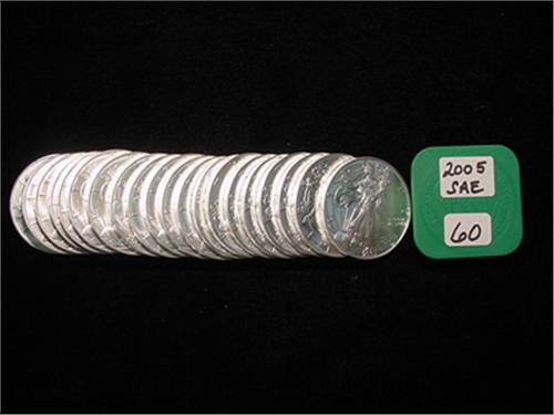 2005 Coin Roll of (20) Silver American Eagles Gem Uncirculated