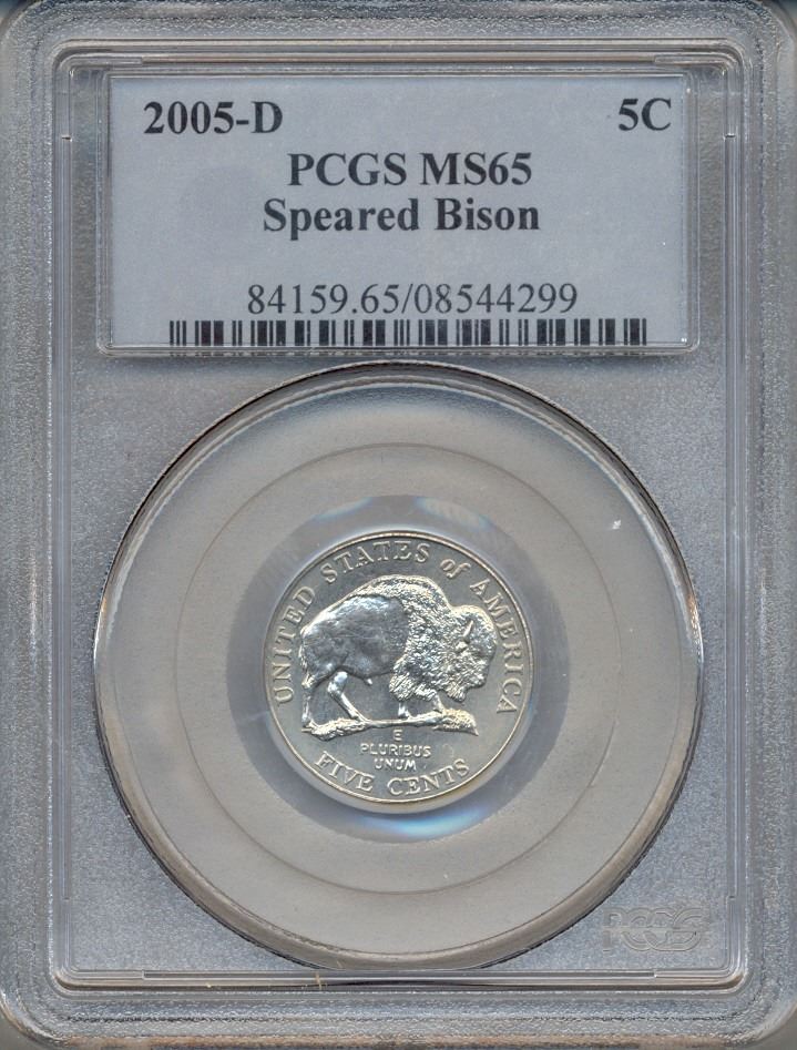 One 2005-D Speared Bison 5 Cent Coin PCGS MS65.