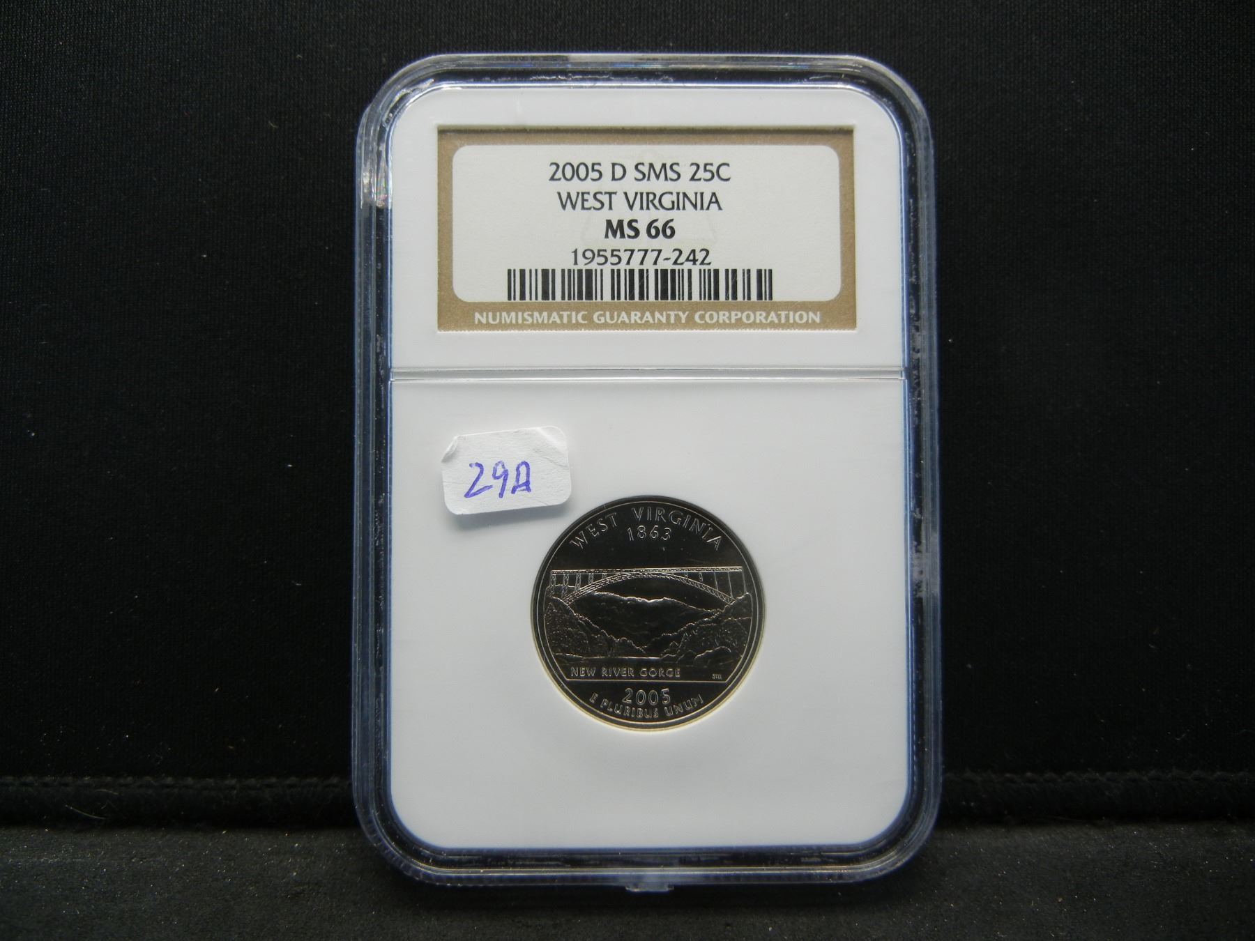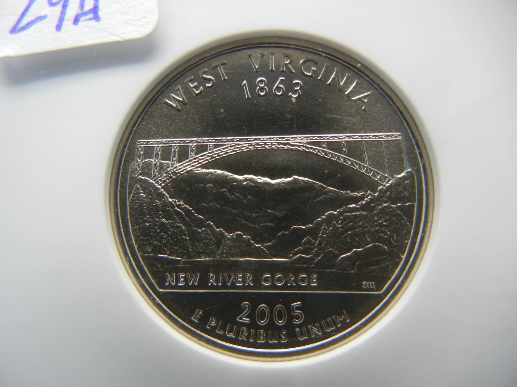 2005 D West Virginia State Quarter. NGC slabbed as MS 65, High Grade.