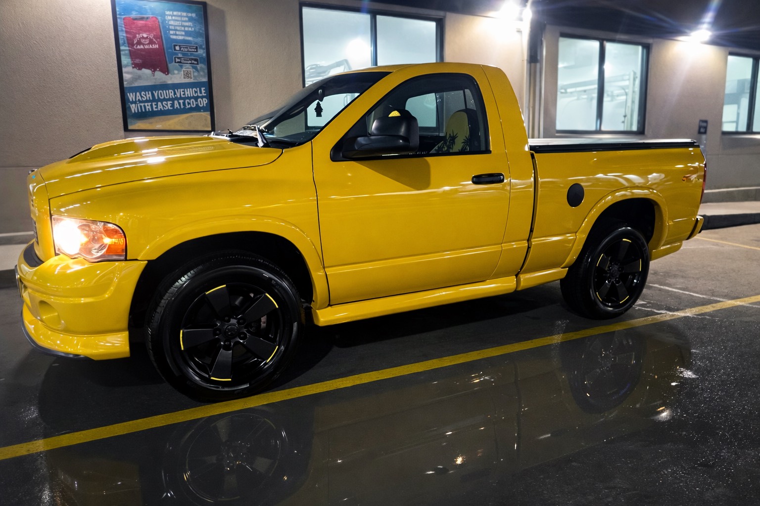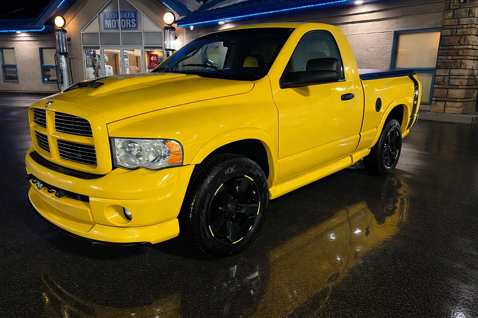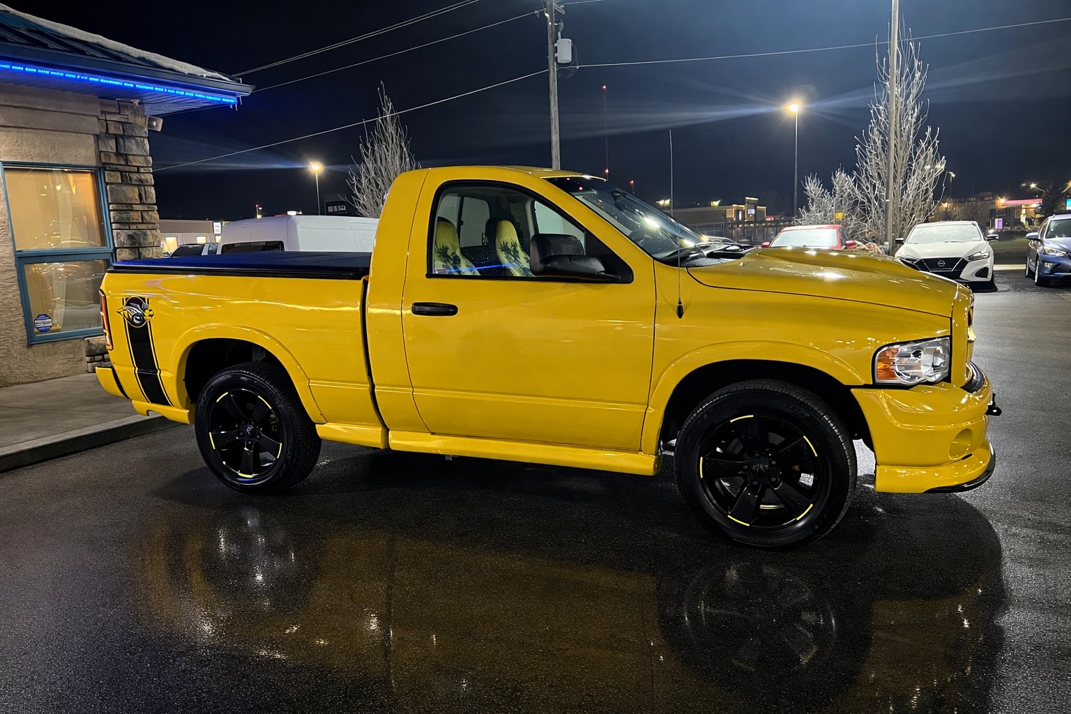 Cross the block is an exceptionally rare and highly original 2005 Dodge Ram Rumble Bee, finished in its factory original paint and presented in undamaged, unmodified condition—a true standout among surviving examples. This rust-free Southern Alberta truck has led an extraordinarily gentle life, having been flat-towed behind a motorhome from new, preserving its condition far beyond typical use.