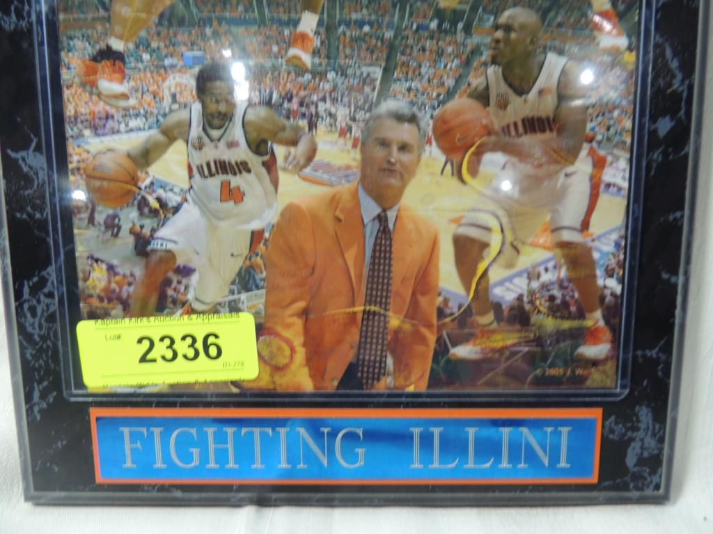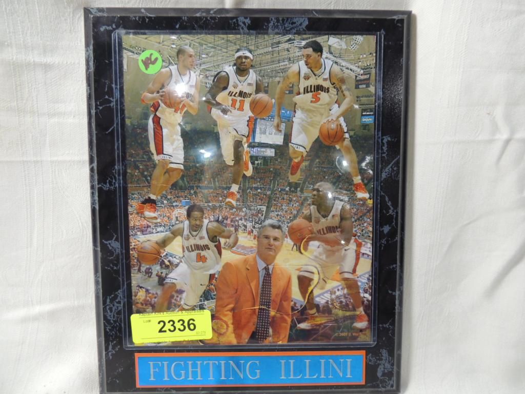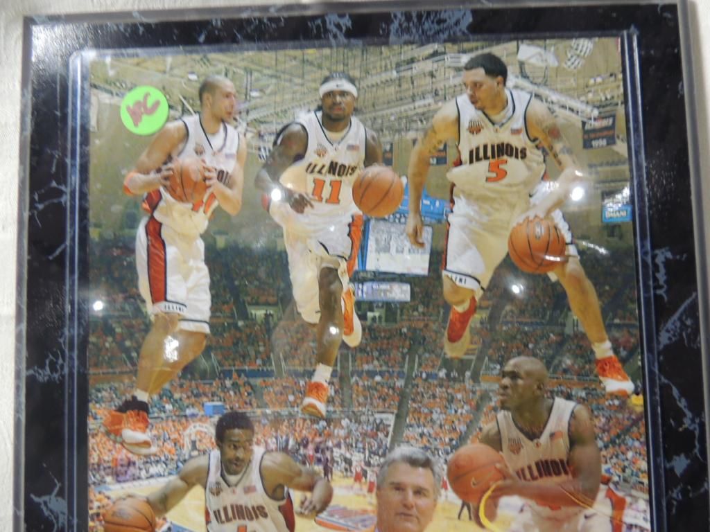 2005 FIGHTING ILLINI PLAQUE SHOWING 5 PLAYERS AND COACH. SLIGHT DAMAGE SEE PICTURE FOR DETAILS. AS SHOWN.