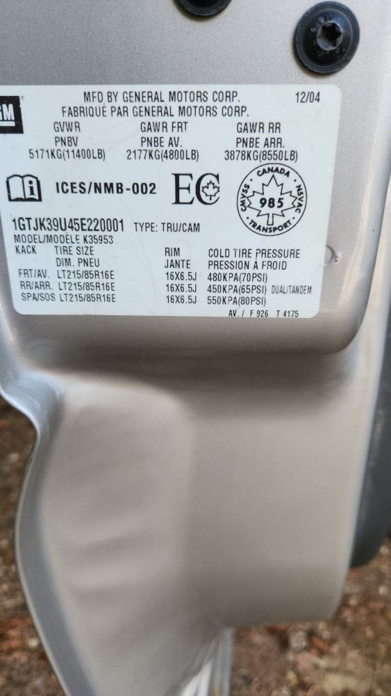 Automatic Transmission / Vortec 6.0 liter Motor / Full Load No Leather Or Sun Roof / You Would Be The Third Owner / New Windsheild / New Spray in box liner / New Fifth Wheel Rails / New Battery / New Brakes / All new/ Only 242 Kms which is very low for the year of the truck / its in very Good condition,Tires Look Like New / The Seats Are In Very Good Condition / 8 Foot Box / New Brake controller / Vin 1GTJK39U45E220001