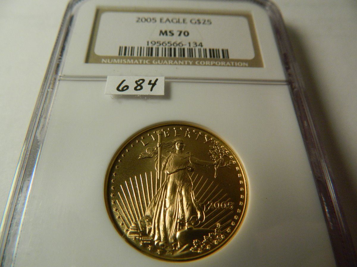 2005 Gold $25 Eagle, NGC MS70, 1/2 ounce Fine Gold