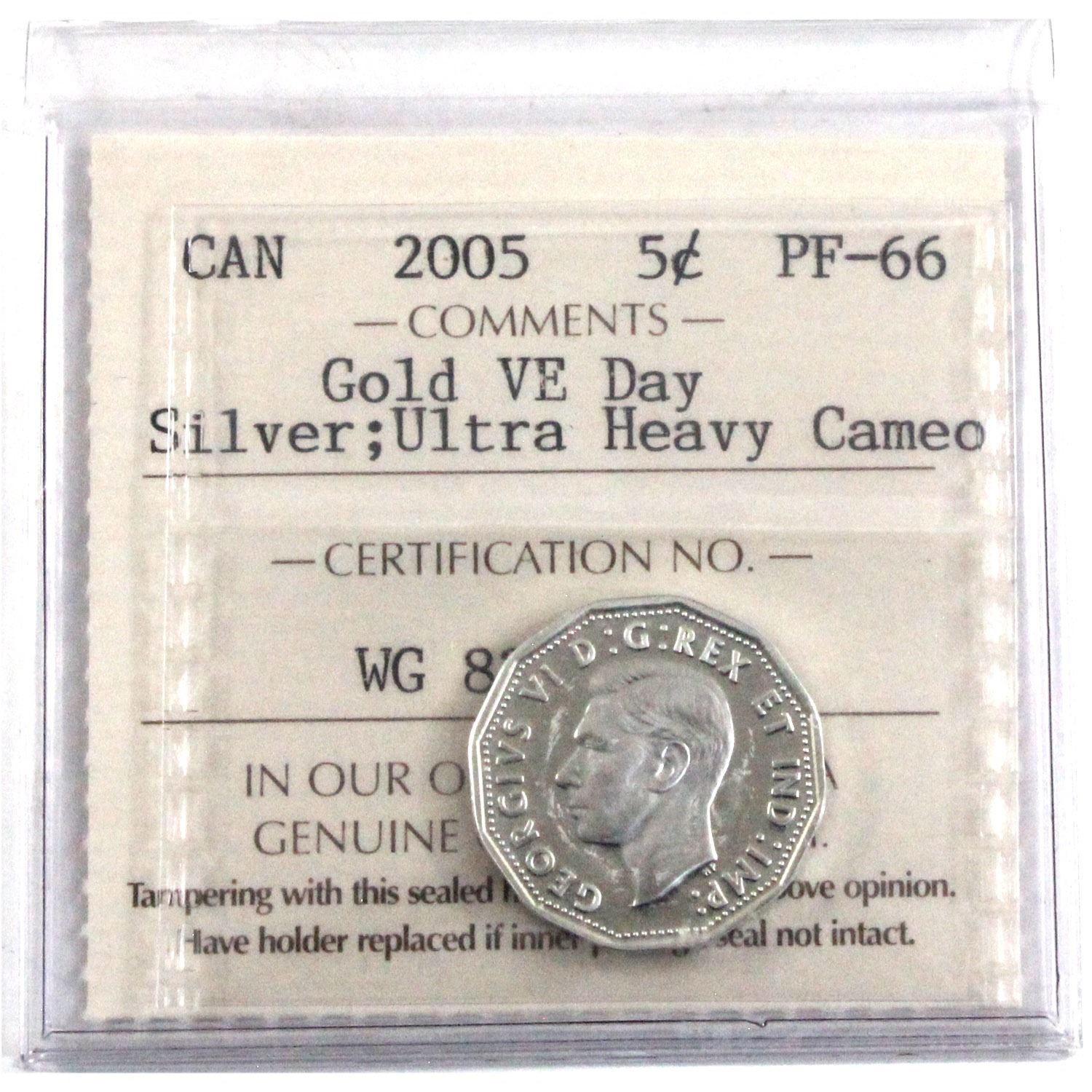 2005 Gold VE DAY 5-cent ICCS Certified PF-66 UHC