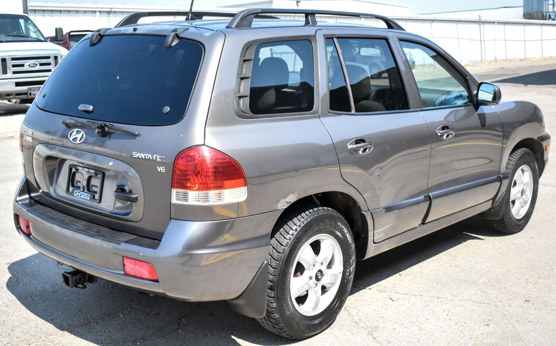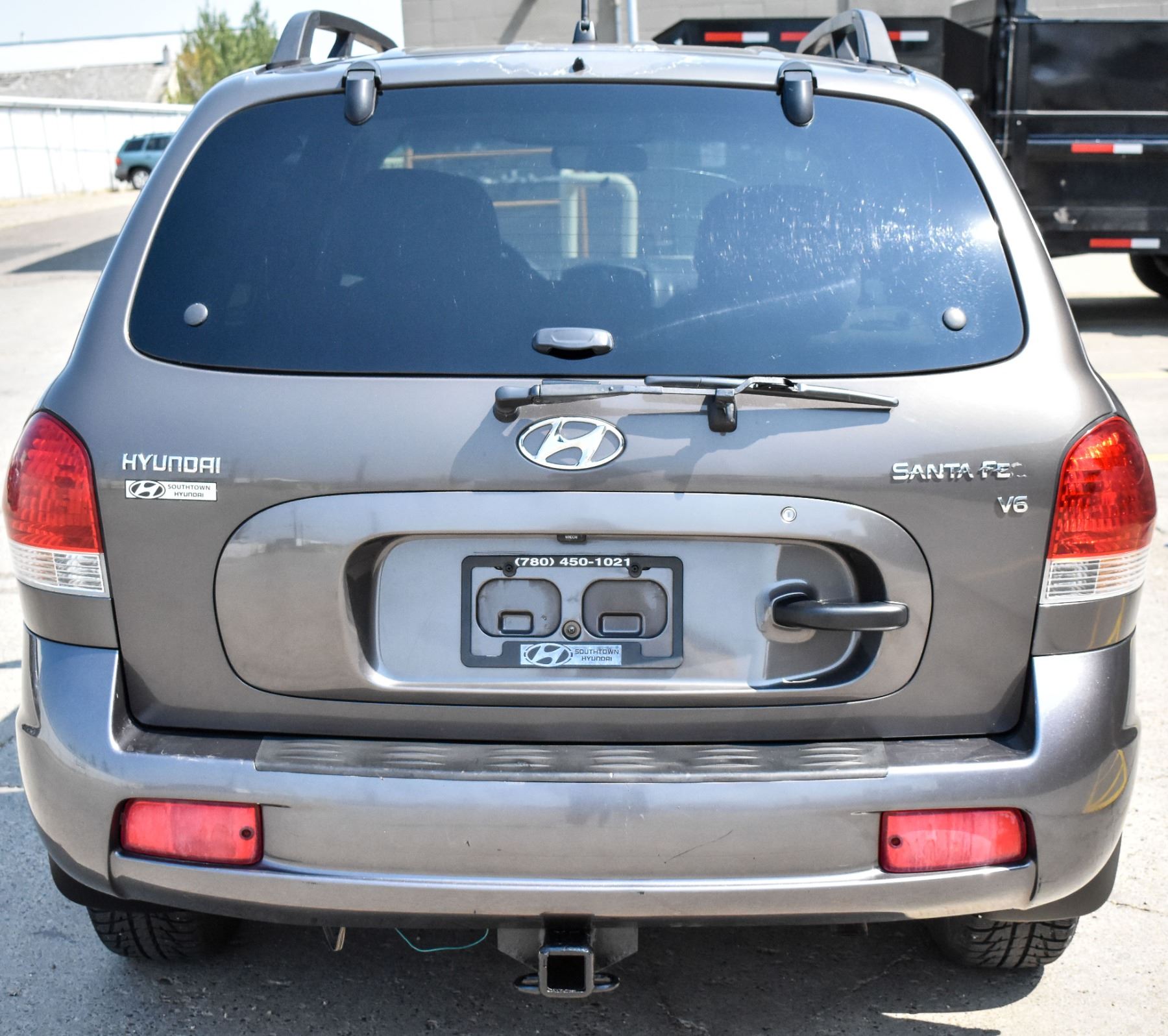 VIN: KM8SB13DX5U981960 KM: 177003 Engine: V6 Color: GREY 2005 HYUNDAI SANTA FE, AIR CONDITIONING, CRUISECONTROL, HEATED SEATS, POWER DOOR LOCKS, POWER WINDOWS, CD CHANGER, POWER MIRRORS, CRACKED WINDSHIELD, ALL BIDS SUBJECT TO BANK, BAILIFF OR OWNER APPROVAL. ALL VEHICLES ARE SOLD AS IS.