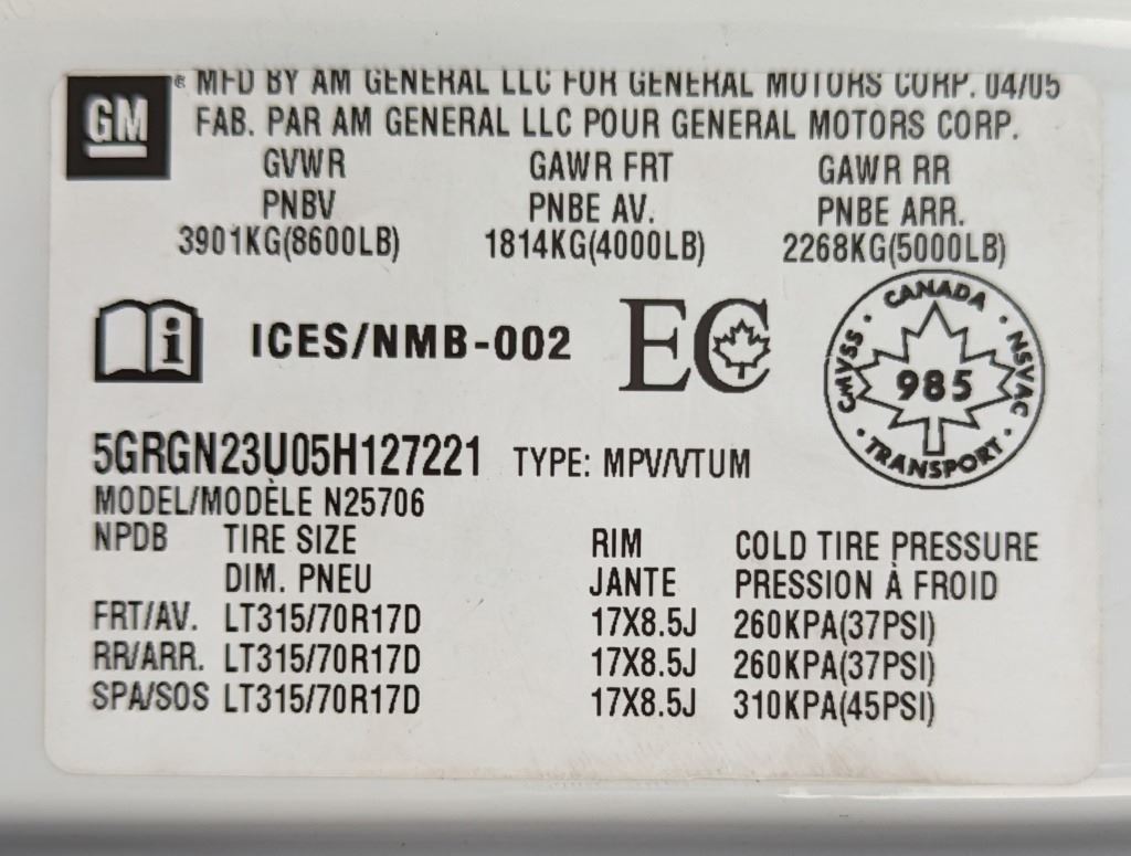 2005 Hummer H2 with under 48,000 miles has a clean CARFAX and retails its original paint and windshield. This rust-free, unmolested H2 is fully loaded with fresh 20-inch alloy wheels with 35-inch Venom tires. Power comes from a 6.0-liter V8 engine producing 325hp, backed by a 700R4 automatic transmission. This H2 is fully equipped with navigation, sunroof, swing-out spare-tire carrier, third-row seat and roof rack. This Hummer has been garage-kept from new. Buyer is responsible for tax, title and license fees in addition to purchase price and buyer's premium. All motor vehicles sold as is, where is.