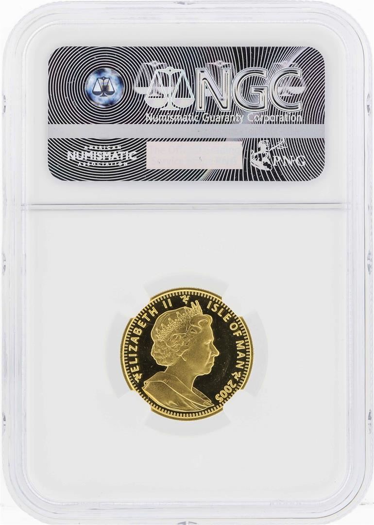 One 2005 Isle of Man 1/5 Crown Himalayan Gold Coin NGC MS65. NGC Certified.