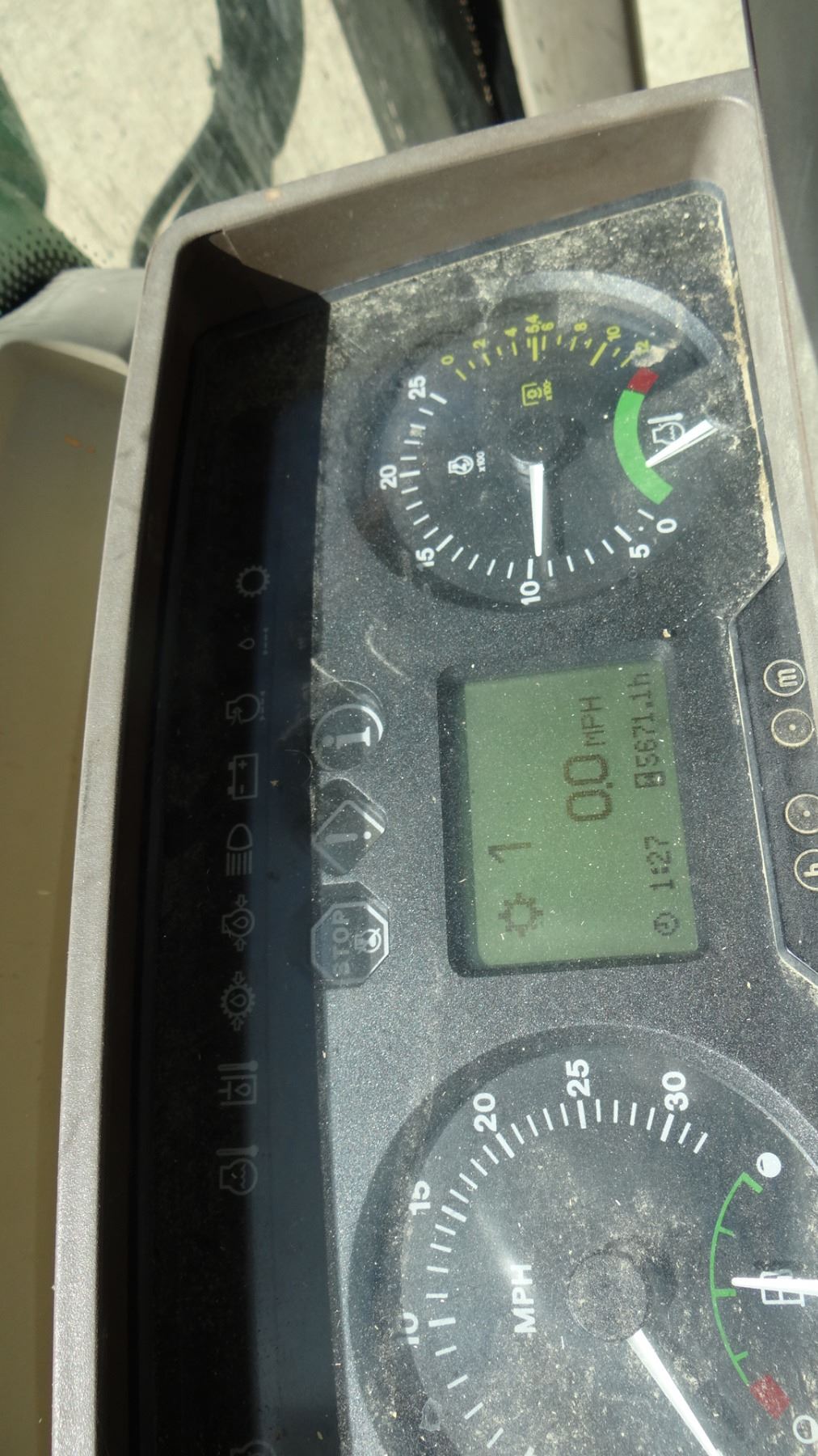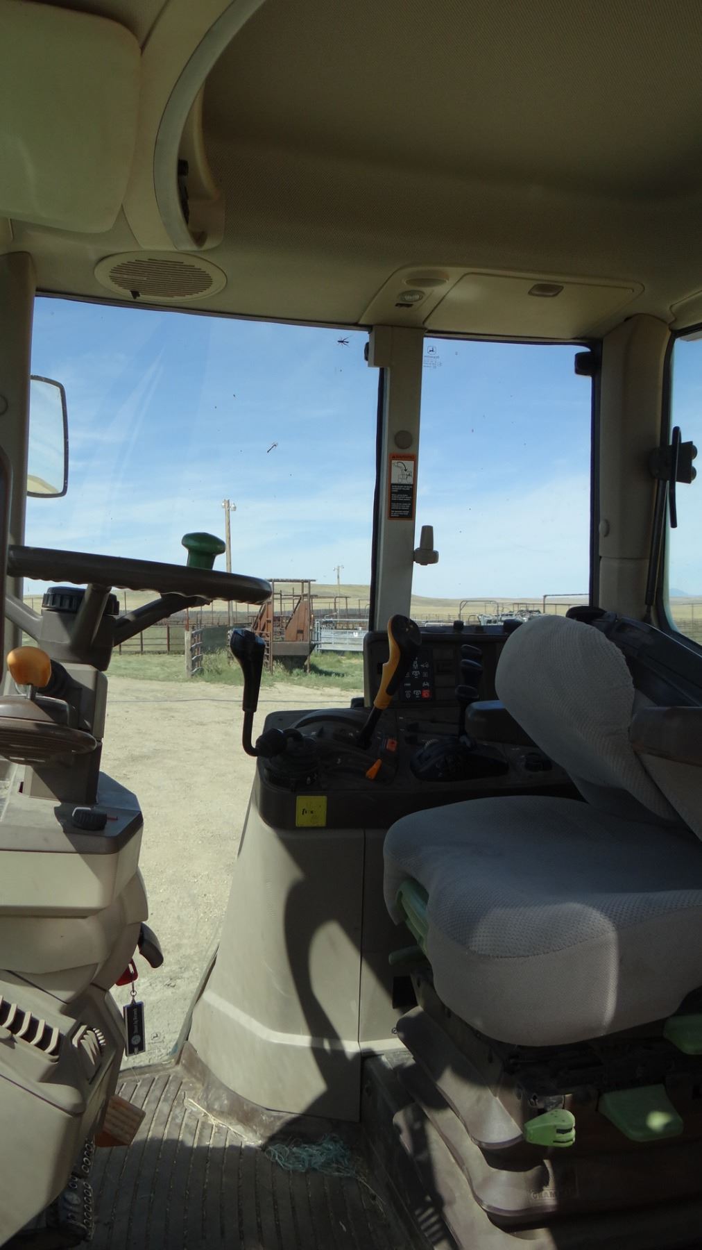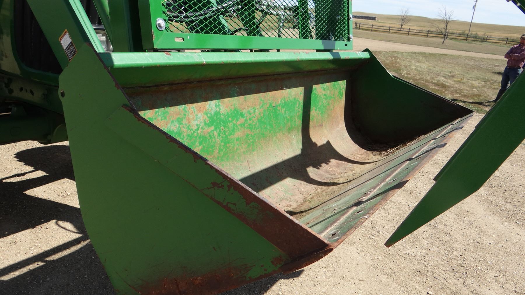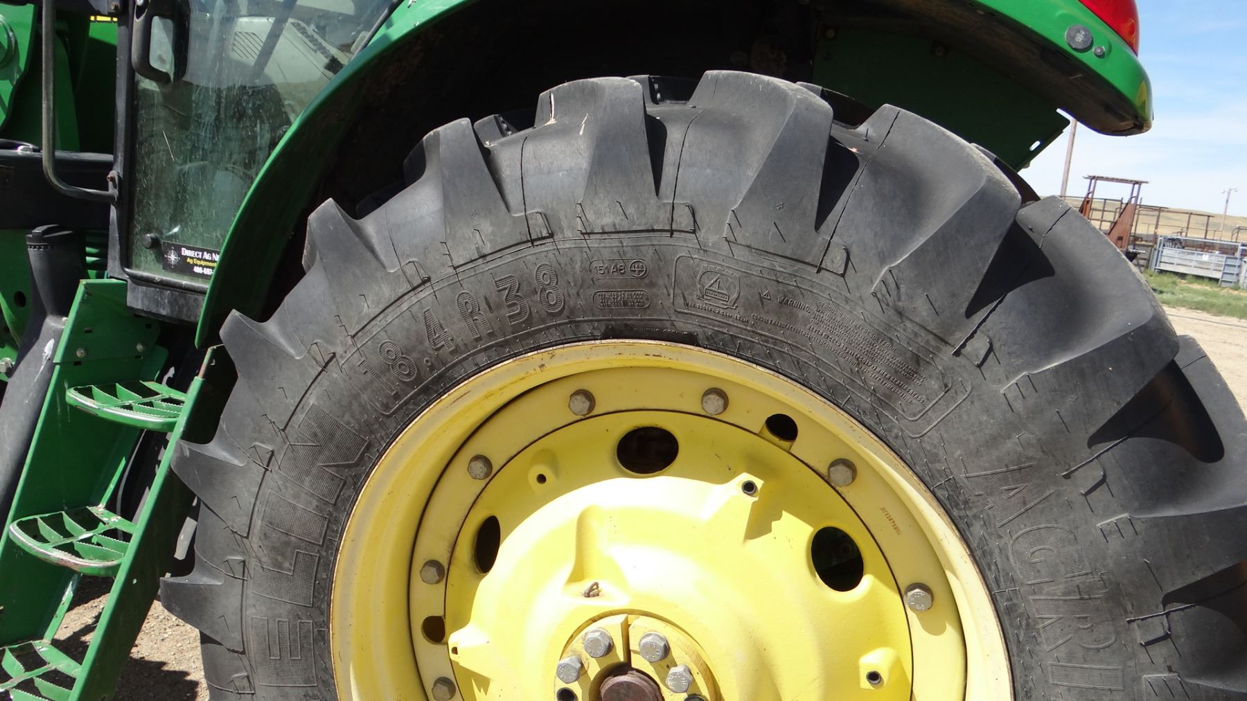 2005 JD 7320 w/ JD 741 loader, 7’ bucket/grapple, 5671 hrs., 6.8L diesel, no DEF, 125 eng hp/105 pto hp, PowrQuad – 16 f/r, 3 hyd., 3 pt., dual pto, rear 18.4R38 90%, front 420/85R26 75%. Serial # RW7320R012734