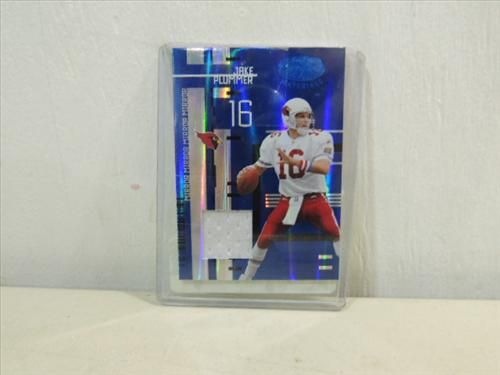 2005 LEAF #121 FOOTBALL JERSEY SEGMENT JAKE PLUMMER. 20 OF 50. AS SHOWN. VIEW PICTURE FOR DETAIL.