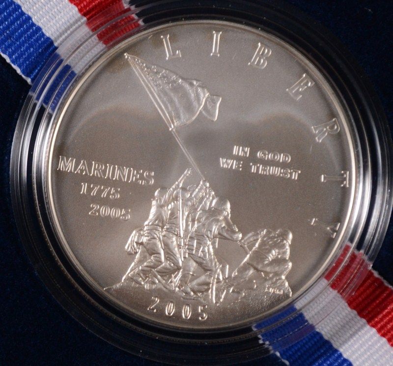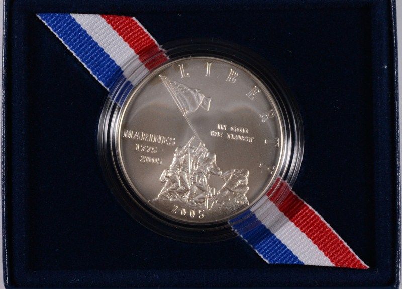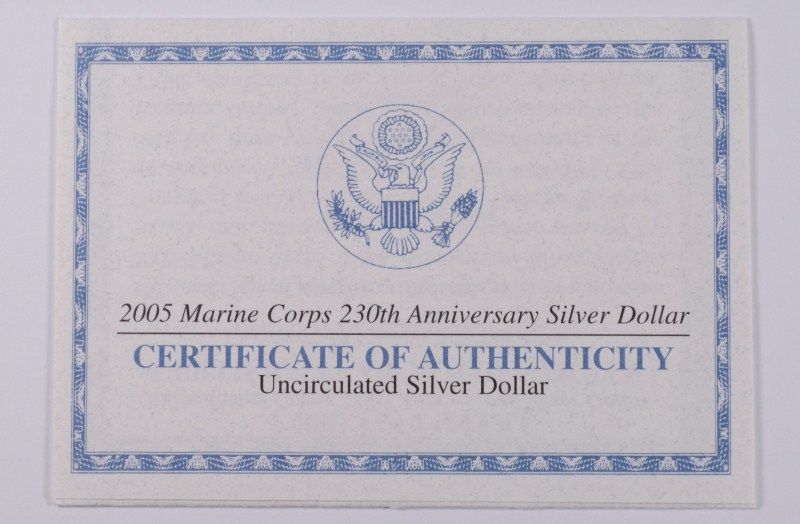 2005 MARINE CORPS SILVER DOLLAR, BU, ORIGINAL BOX / CERT