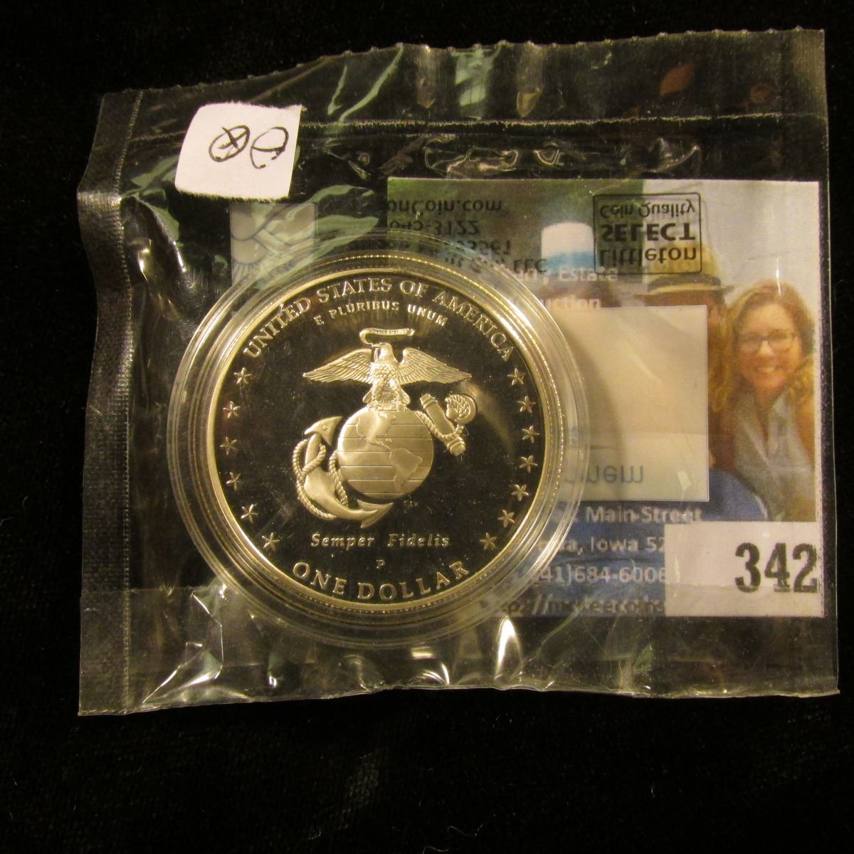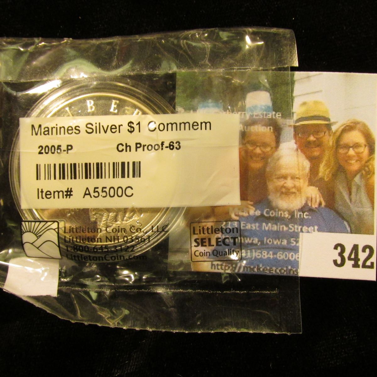 2005 Marines Silver Dollar Commemorative in Littleton Coin Cellophane Holder graded CH PROOF-63. Encapsulated.