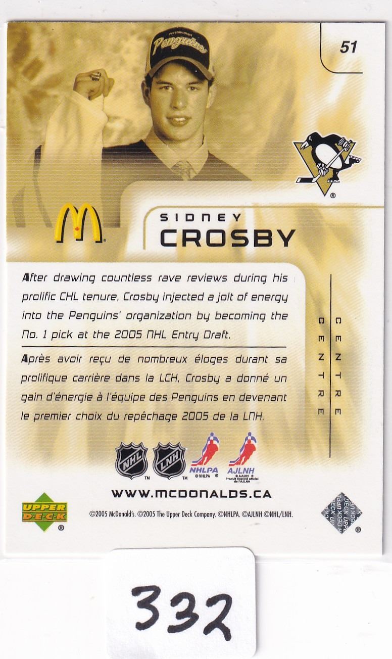 2005 Mc'Donalds Sidney Crosby rookie Card