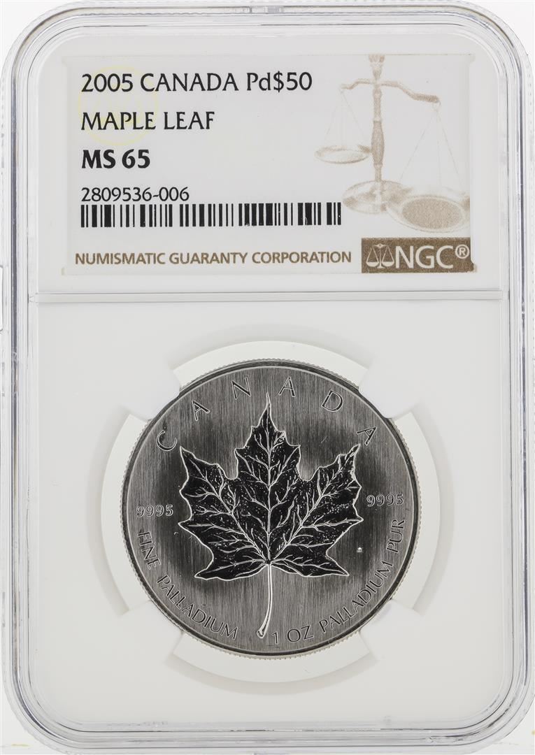 One 2005 NGC MS65 $50 Maple Leaf Palladium Coin. NGC Certified.