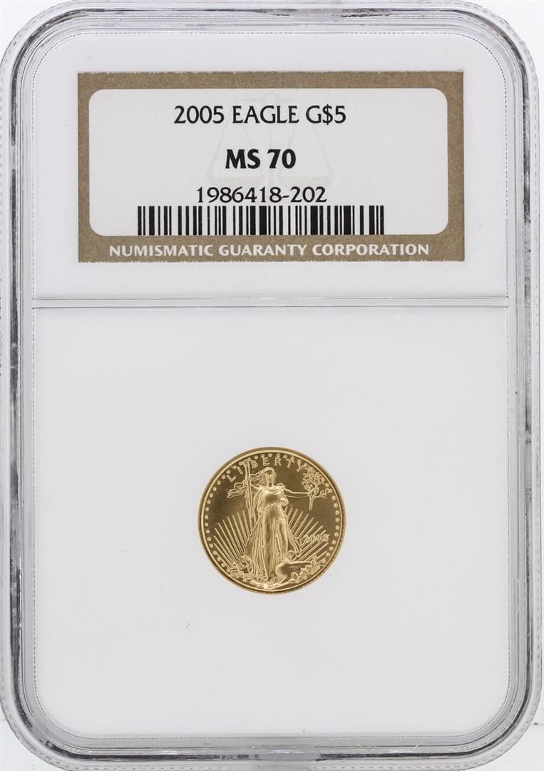 One 2005 NGC MS70 $5 American Eagle Gold Coin. NGC Certified.
