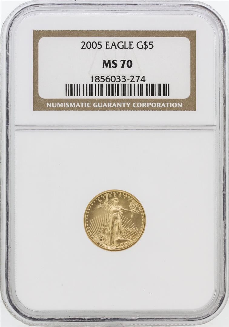 One 2005 NGC MS70 $5 American Eagle Gold Coin. NGC Certified.