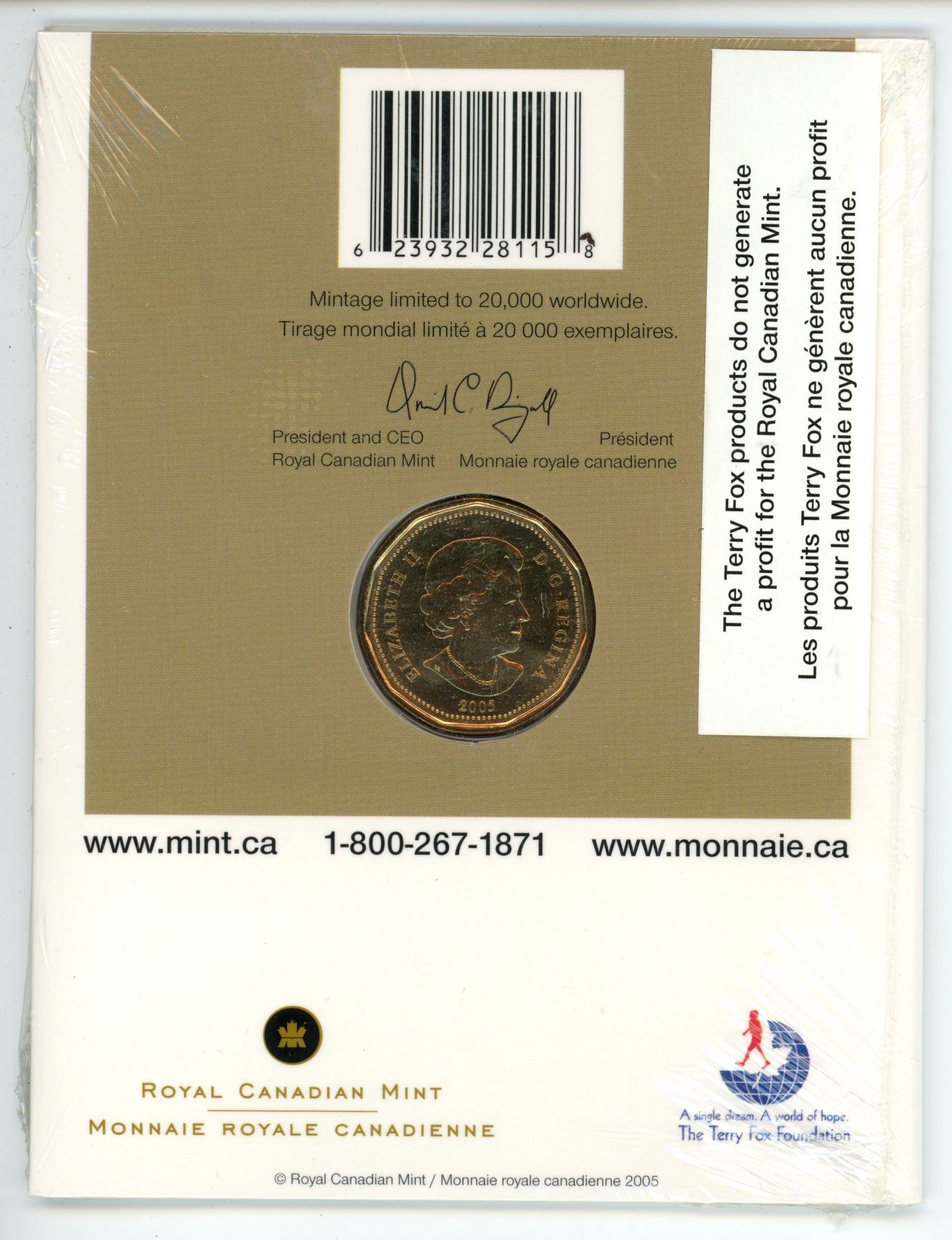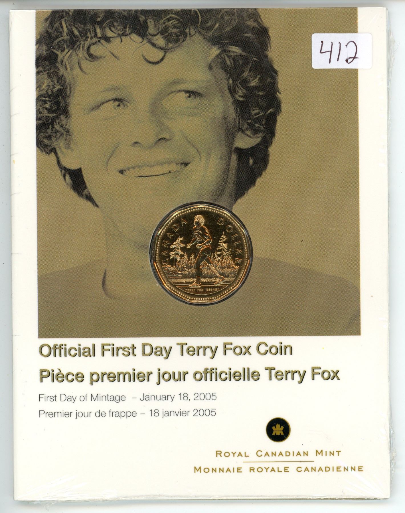2005 Official First Day Terry Fox $1 Coin. Unopened RCM folder of issue.