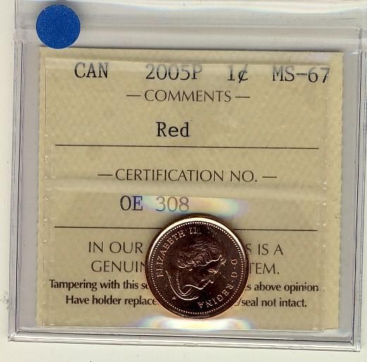 2005 P 1¢ ICCS MS67 Full Red, A superb GEM example.