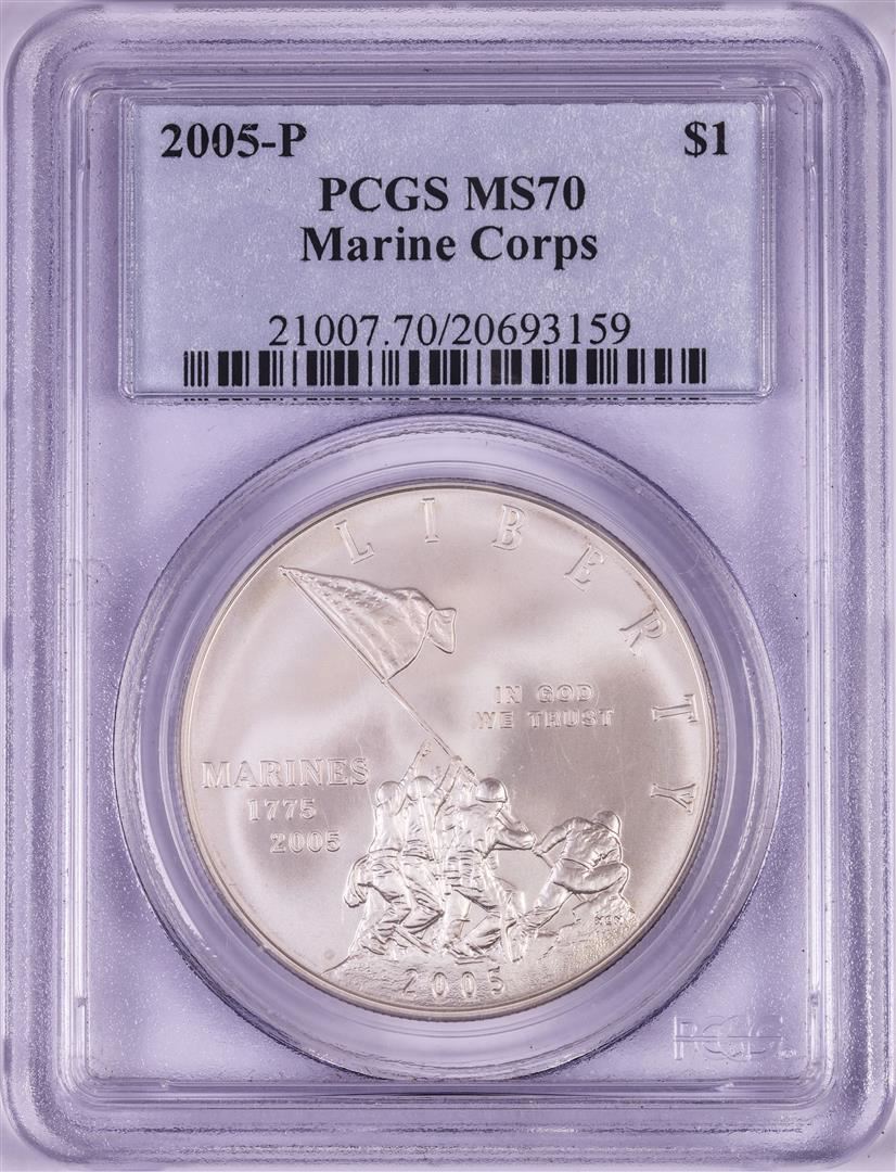 2005-P $1 Marine Corps Commemorative Silver Dollar Coin PCGS MS70