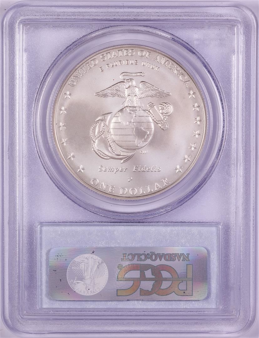 One 2005-P $1 Marine Corps Commemorative Silver Dollar Coin PCGS MS70. PCGS Graded.